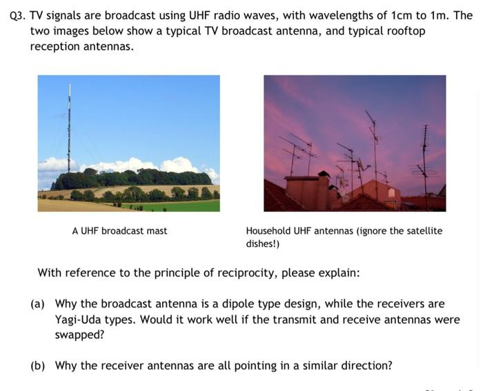 Solved: Q3. TV Signals Are Broadcast Using UHF Radio Waves... | Chegg.com